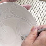 現代でいうパスタ皿のような深皿をリムや輪花のアレンジも検討しながら1枚つくります。