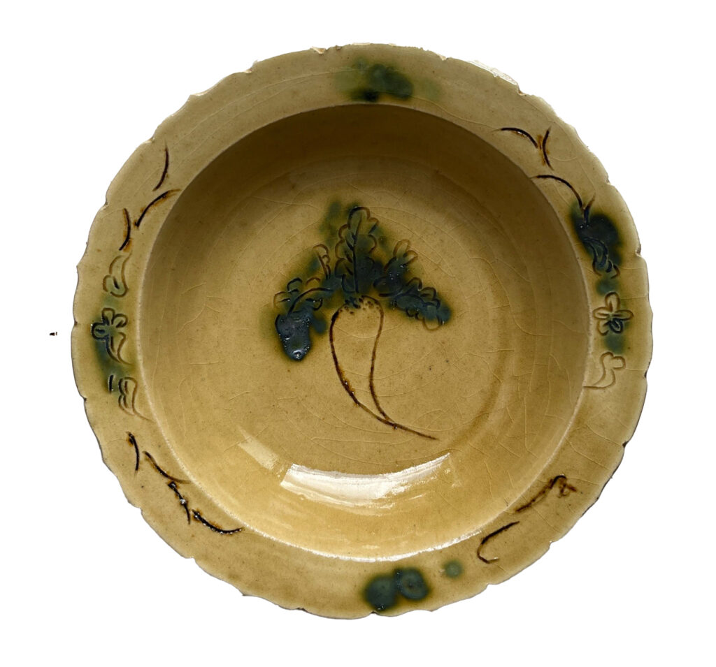 黄瀬戸は室町時代からの古瀬戸の流れを汲むもので、桃山時代の黄瀬戸は釉薬が特に美しく、独特の趣がありました。黄瀬戸は本来、食器として作られましたが、茶人が黄瀬戸の向付を茶碗として用いたことで、一躍、茶の湯の世界で見直されることになり、黄色の釉を黄金に見たてて寵愛されました。