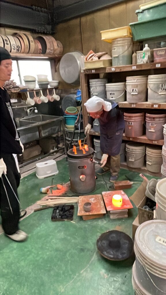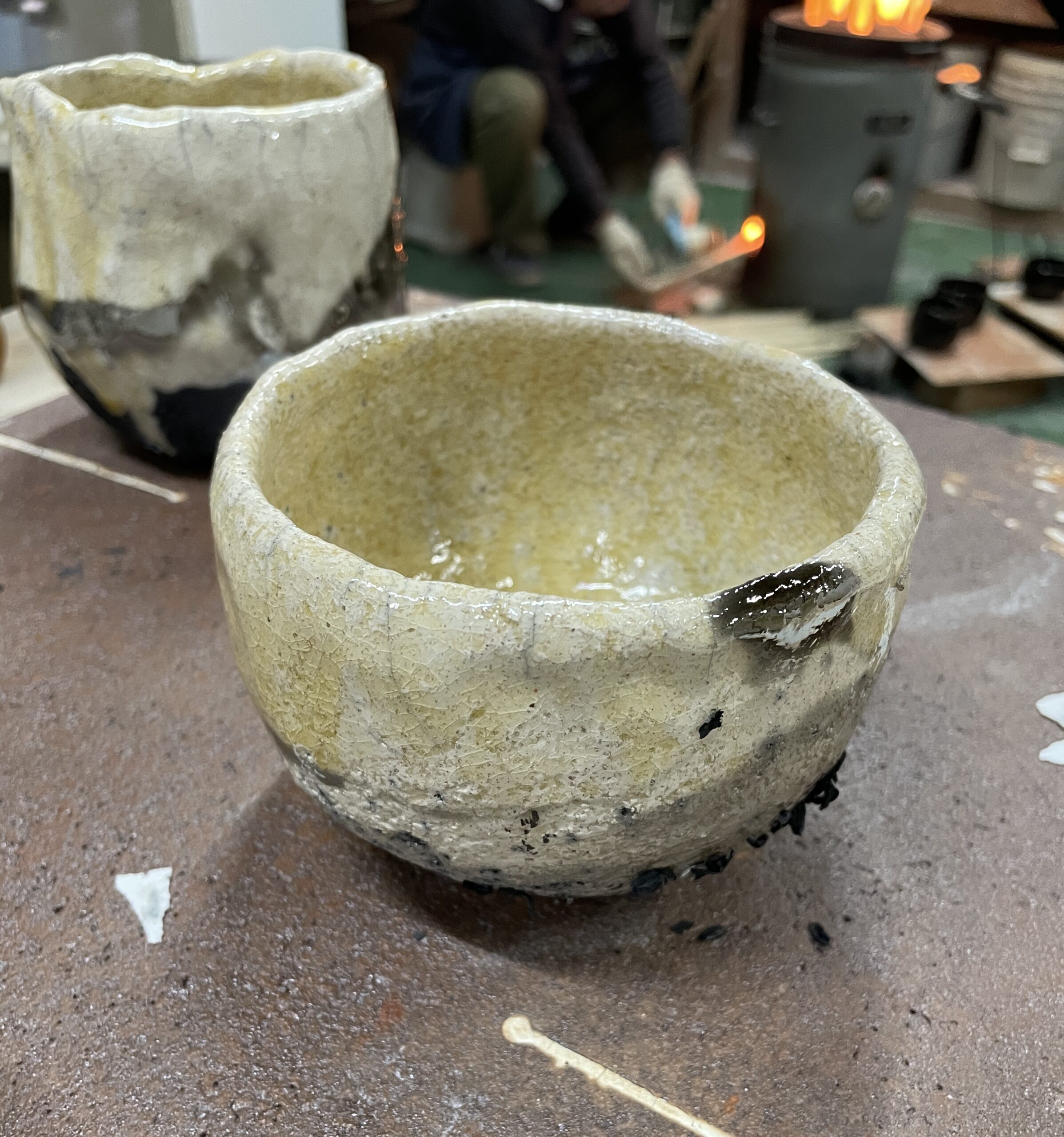 何といっても楽焼は焼成が見どころで、大変おもしろいものです。黒楽の焼成には1150〜1200℃の強還元で焼く為、焼成はとても難しいものです。